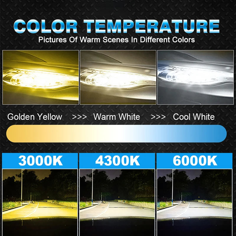 Température de couleur : 6500K Blanc froid 4300K ​​Blanc chaud 3000K Jaune doré